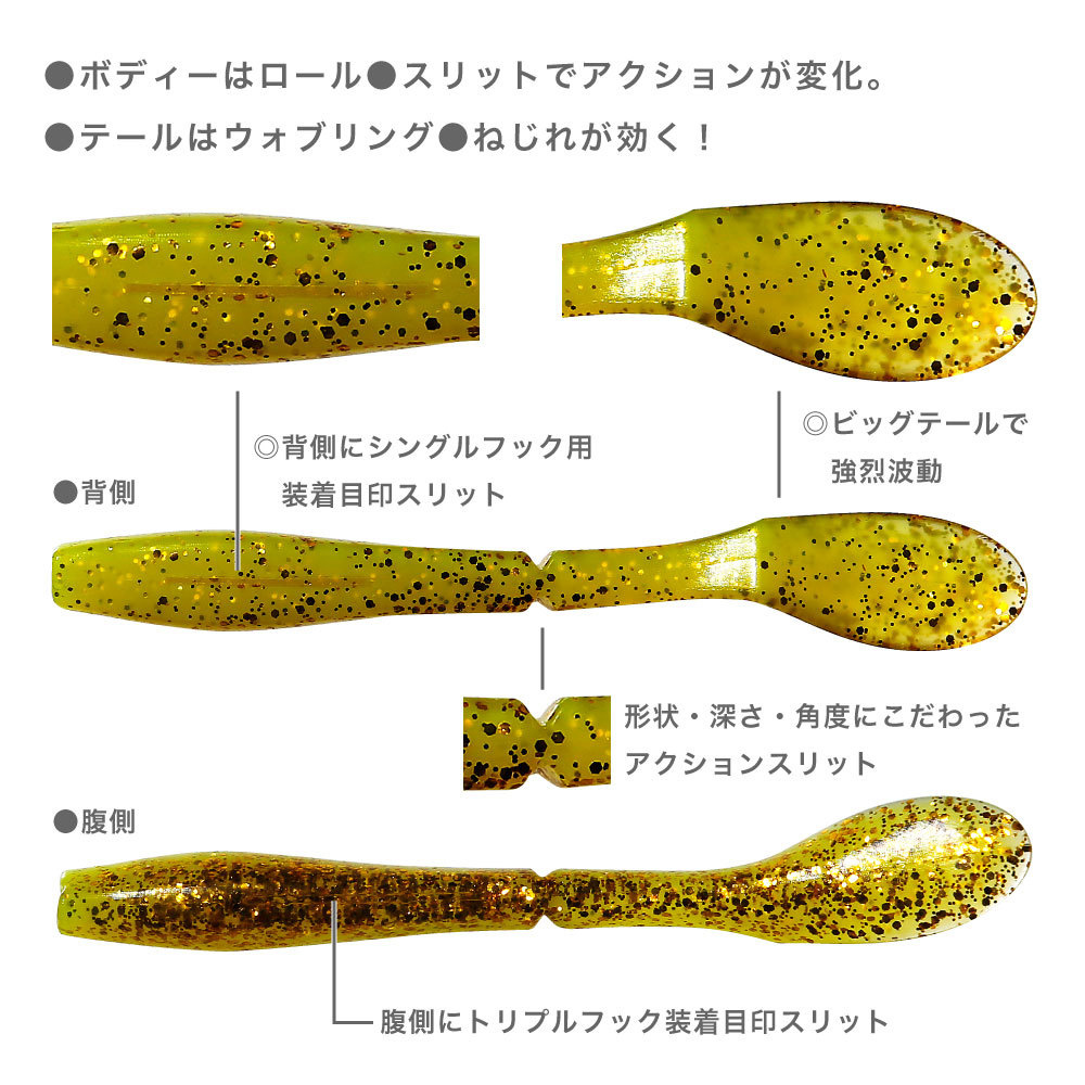 スローでも、カーブフォールでも動く魅惑のビッグテール。
