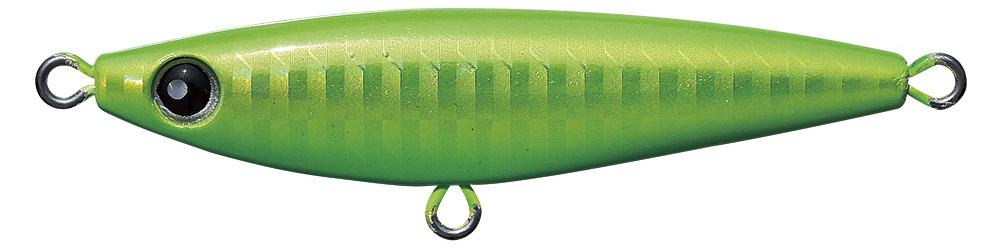 ミディアムスローから浮き上がり、そのスピードでシンキングペンシルのようなユラユラとしたアクションをさせる。スピード・レンジ・アクションが重要となるフラットゲームにおいて、センターバランスのメタルジグでしか出せない“ゾーン”を新たに手に入れた。スイッチオフ状態の油断したベイトのように泳ぐ姿は、ヒラメには恰好のエサと映る事だろう。
