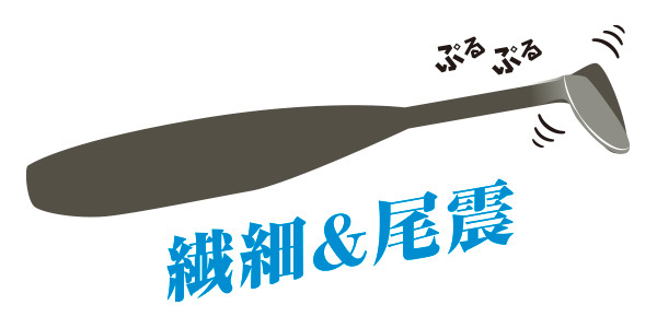 テールにかけて細くシェイプされた形状のテール先端だけがプルプルと動くフィネスシャッド。