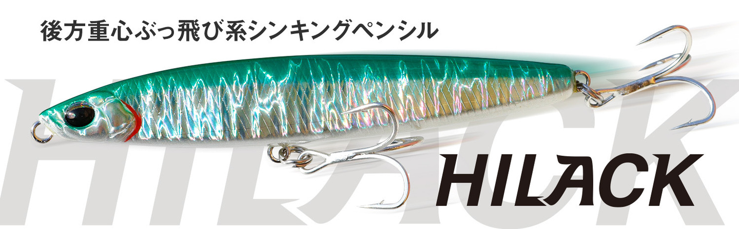 ミノーやメタルジグがある中、シンキングペンシルを選ぶのは何故だろうか?もっと言えばジグミノーではなく、敢えてシンキングペンシルを選ぶのは何故なのか?シンキングペンシルならではの強みとはなんだろうか?それは飛距離、スローリトリーブ、浮き上がりの良さ、ベイトライクなシルエットの4つの要素の組み合わせではないだろうか。しかし水深や波風などの状況、またポイントはサーフなのか磯なのか、様々な要素が絡み合うフィールドにおいて、1タイプのウエイトでその良さを発揮しきるのは難しい。しかしウエイトアップする場合ボディーサイズが大きくなりがちで、ベイトライクさという魅力が半減してしまいます。そこでハイラックでは、ボディーを98mm共通のまま3タイプのウエイトを設定しました。比重の異なる3タイプは、得意とするリトリーブスピードやレンジが異なり、それぞれに想定したシチュエーションにスペシャライズしたモデルとなっています。各ウエイトの説明をご覧頂き、シチュエーションでローテーションしてみて下さいね